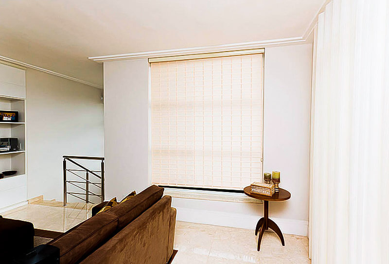 Confeccionada com dois tipos de tecido, uma tela mais fina e outro mais encorpado, a Cortina Infinity proporciona um belo efeito visual ao ambiente. Quando fechada, as listas intercaladas da cortina dão movimento e permitem que a luz entre pelo tecido mais fino, criando um efeito de luz e sombra que ocupa todo o cômodo.